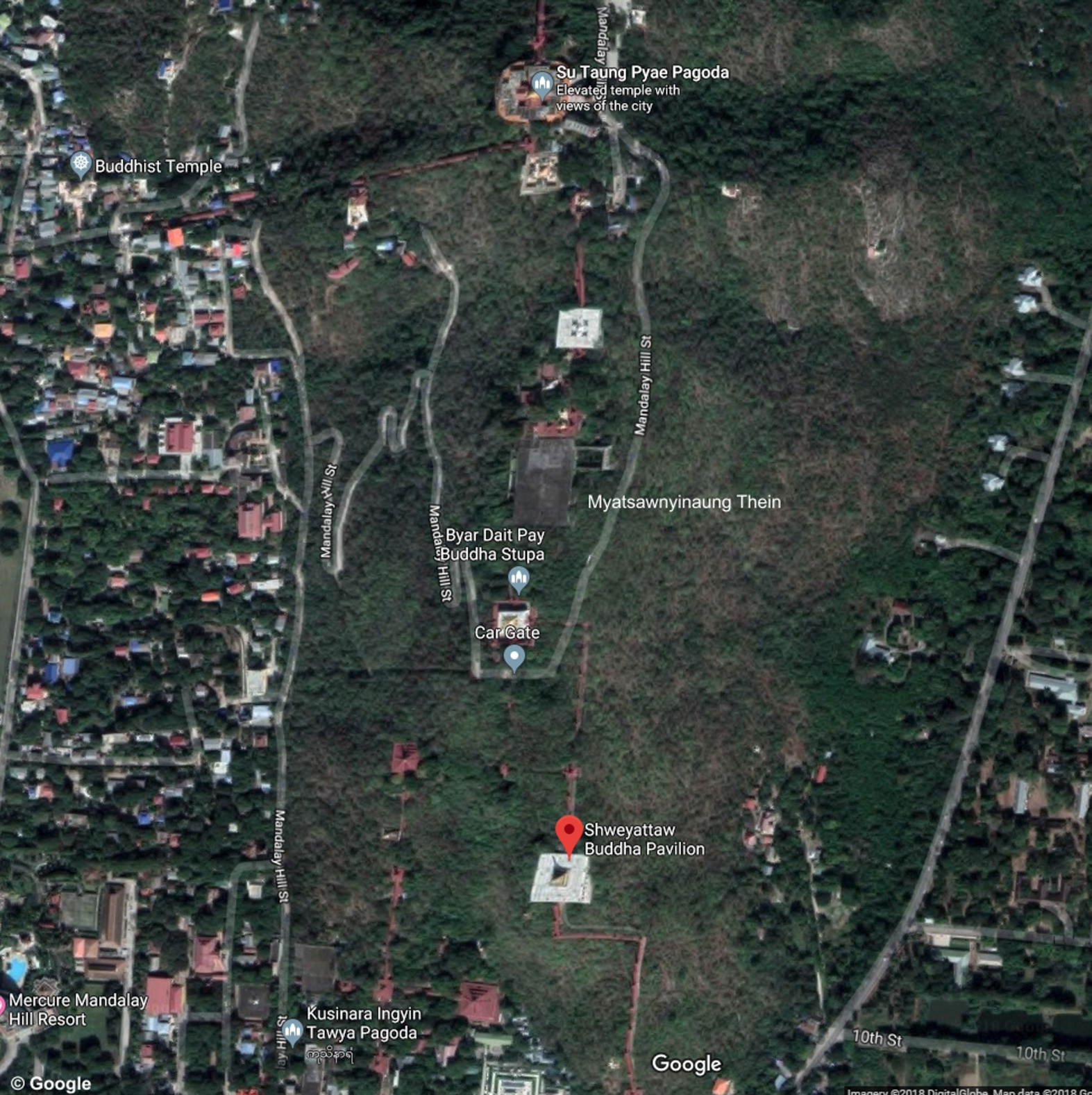 Contemporary aerial view of Mandalay Hill. (Google Maps, accessed July 2018.